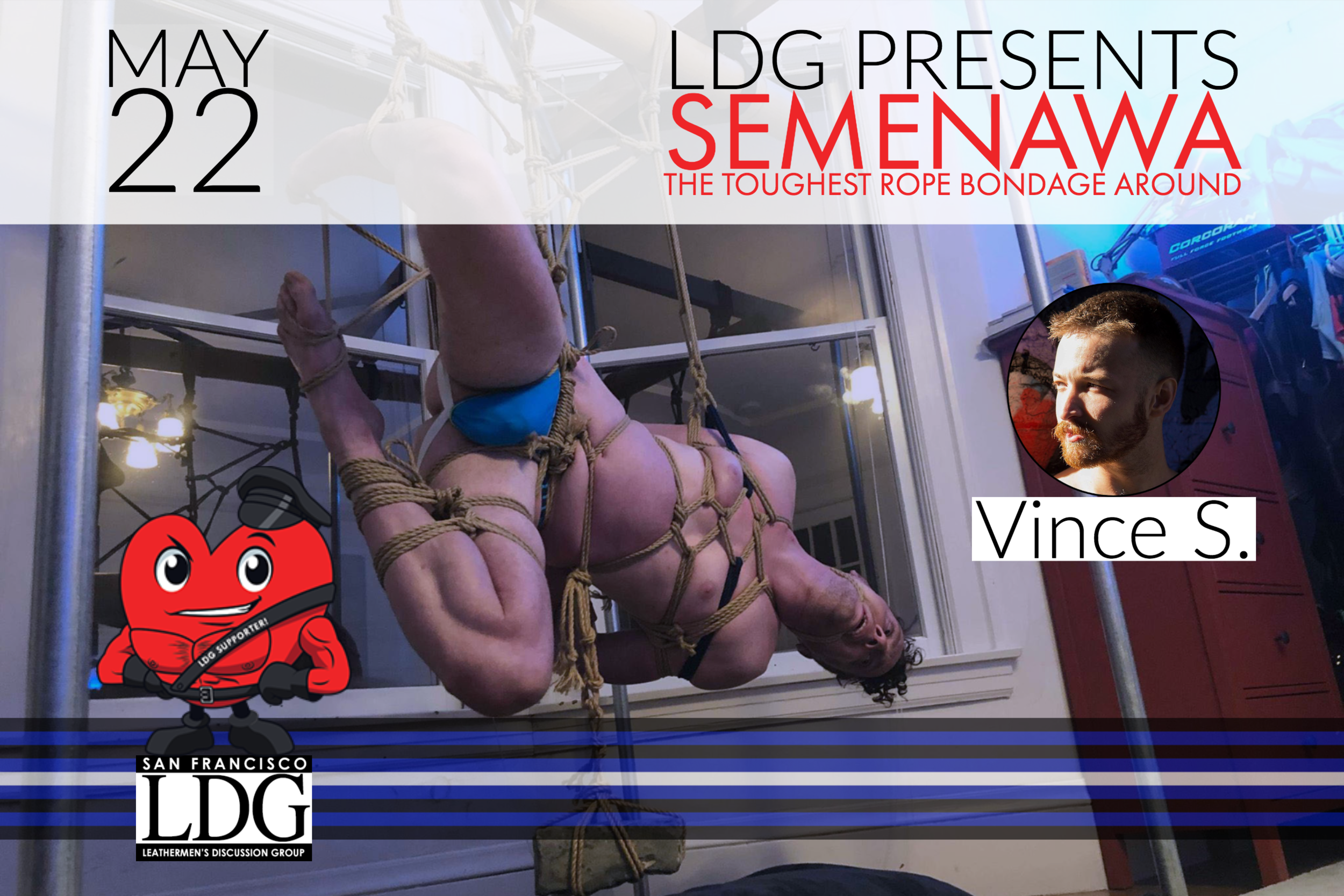 LDG is honored to welcome back Vincent Sparacio, who featured in a program two years ago about Fresh Meat, and is now blazing a trail in San Francisco by running his own Bondage meet up.